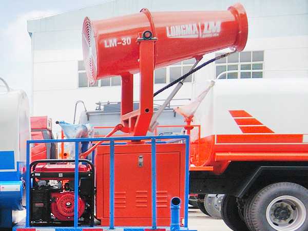 5.配套柴油发电机组供电安装在运输车辆上,操作灵活,使用安全可靠,遥控和人工控制操作,可随意控制调节水平旋转喷雾角度。