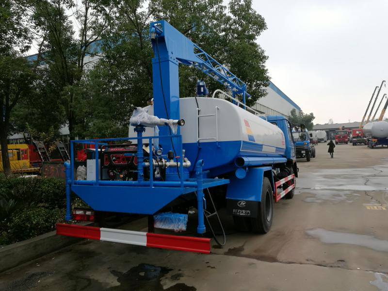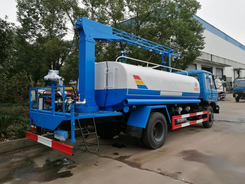 上装配置:罐体为10立方圆形罐,罐体内部做防腐,前冲、后洒、侧喷、高炮,抑尘喷洒杆(带旋转伸缩功能)。喷洒杆离地3.5-4米(也可椐据客户求定制高度 )后部平台带8KW副发电机组,罐体内部加两个1.5KW电动马达(带搅拌功能)罐体喷漆上白下蓝,平台和喷洒杆蓝色。遥控操作喷洒杆上下左右旋转,电控箱安装在后部平台。