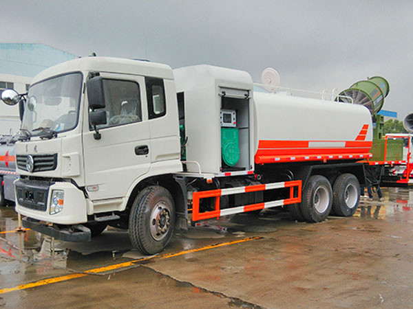 国五东风专用底盘16方多功能抑尘车,将服务于铁道部或其他更多领域。主要是火车运送煤炭,用于对每节火车上的煤炭进行固化,形成保护膜,减少污染。喷洒可360度旋转,同时具备洒水车功能,后平台高炮可同时进行旋转。可电子遥控操作。